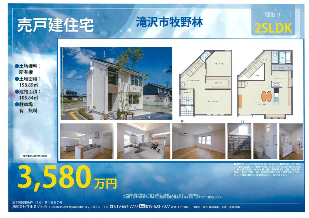 滝沢市牧野林 未入居 売戸建住宅 3,580万円