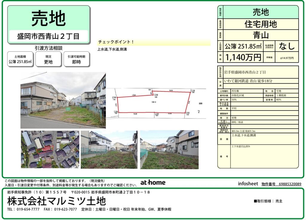 • 西青山二丁目住宅用地 1,140万円
